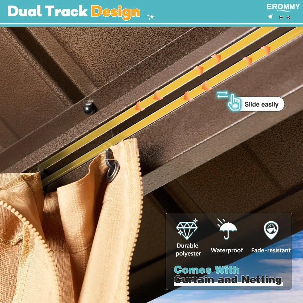 12x16 Hardtop Gazebo with Aluminum Frame, Galvanized Steel Roof, Netting & Curtains for Patio, Lawn, Deck