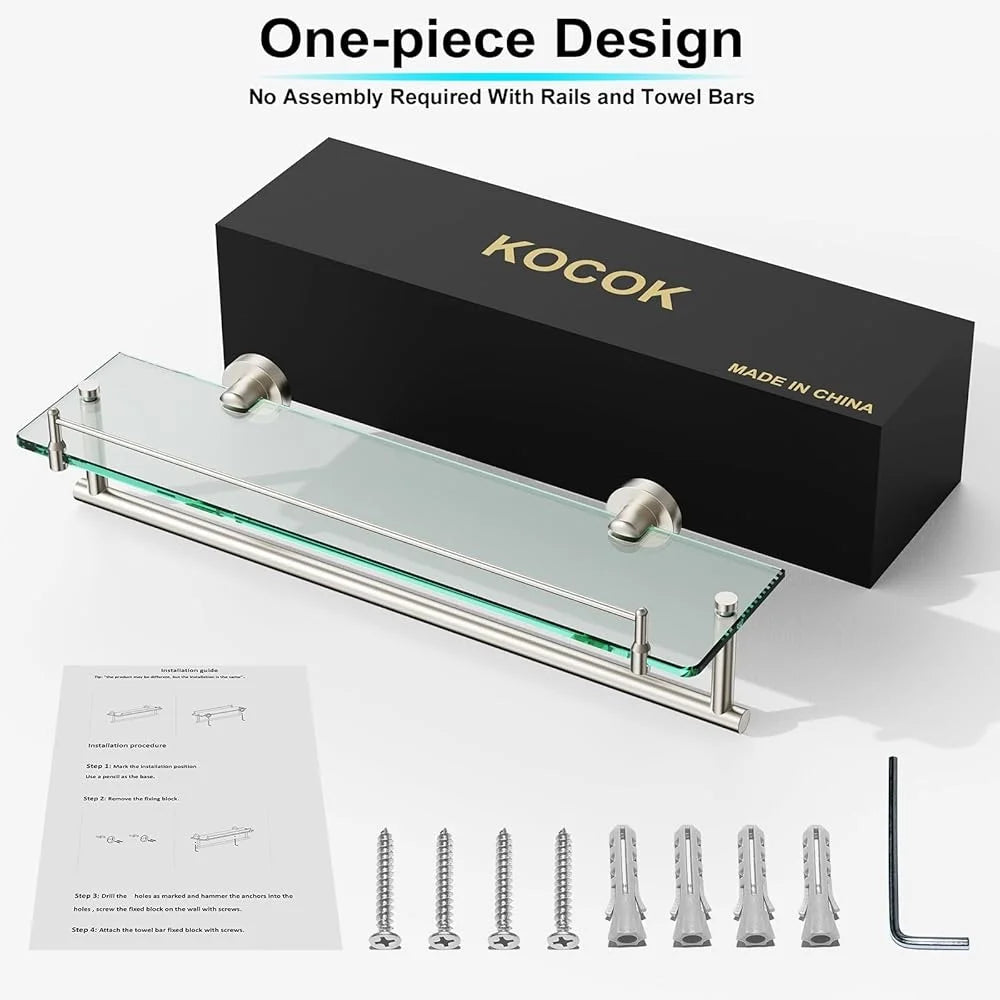 20 Inch Tempered Glass Floating Shelf with Towel Rack