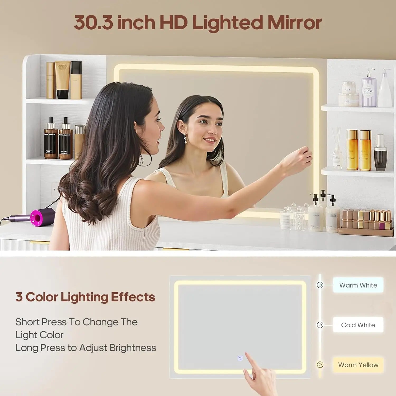 51.2" Fluted Makeup Vanity Desk, 5 Drawer , 6 Open Shelves, Modern Dressing Table-White