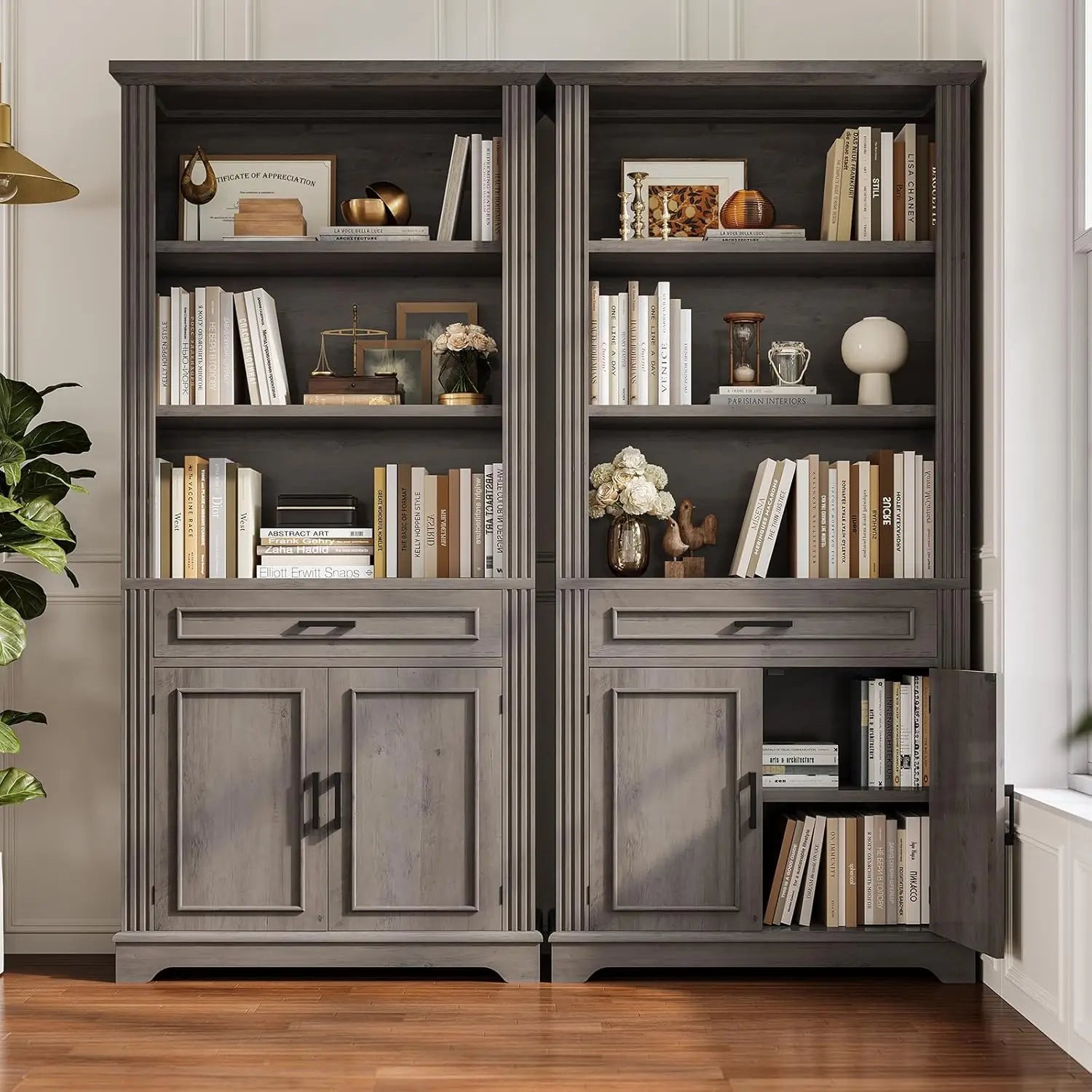 Farmhouse Bookshelves and Bookcases with Doors and Drawer, Bookshelf with Storage