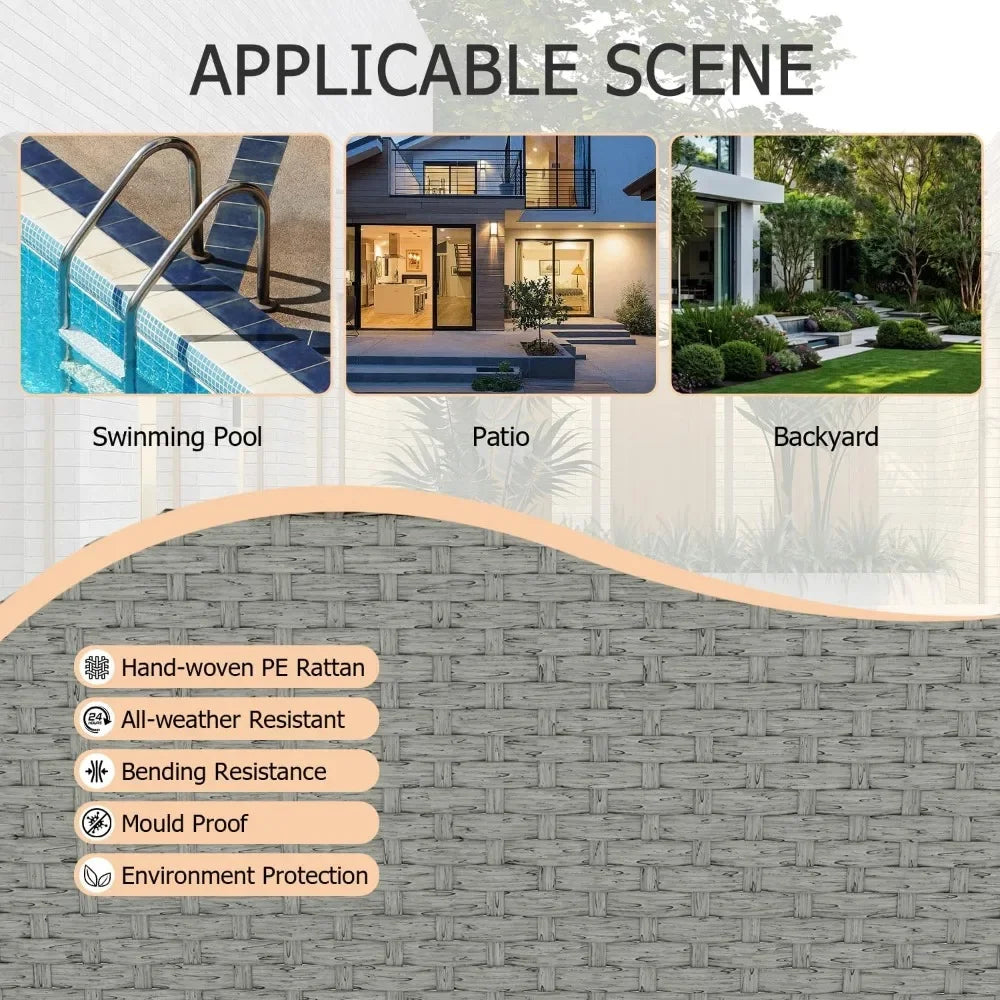 Furniture Set 7-Piece, All-Weather Outdoor Conversation Set Sectional Sofa with Water Resistant Grey Thick Cushions and Coffee Table