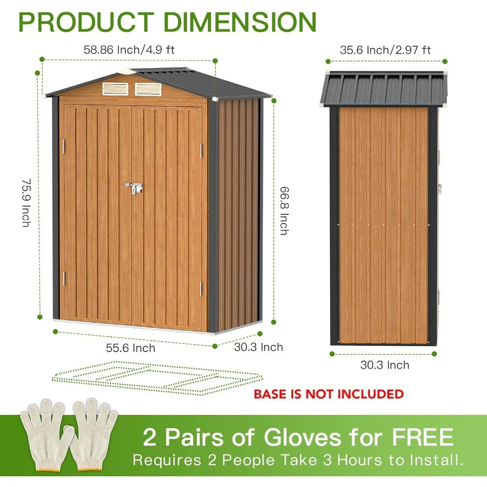 Outdoor Storage Shed, 5x3 Ft Metal Steel Tiny House with Lockable Door, Vertical Outside Storage Building for Garden, Backyard,