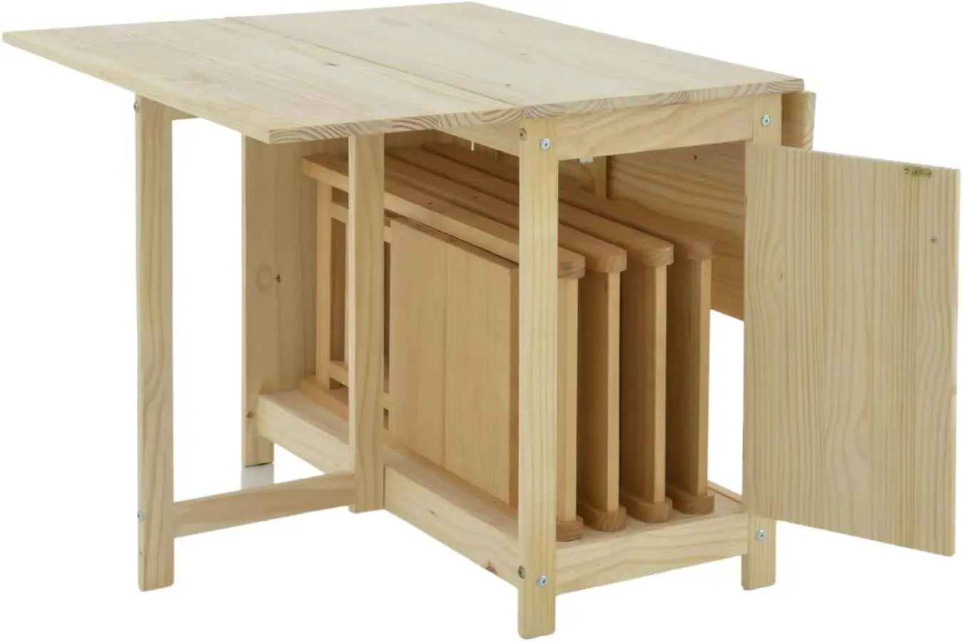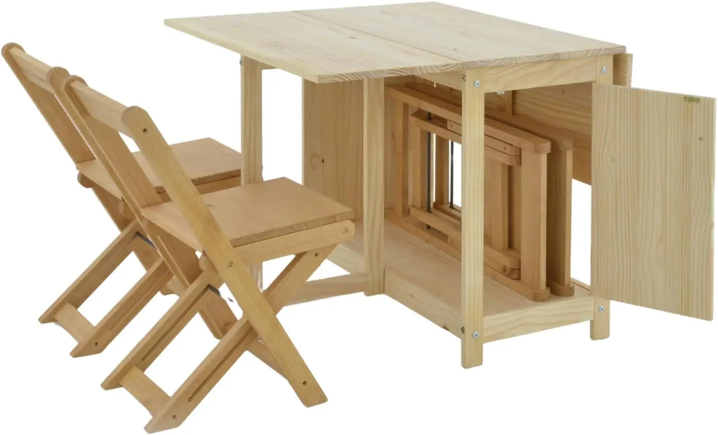 Solid, Natural, Unfinished Wood Folding Dining Table &Chair Set - Drop Leaf Design - Space-Saving, with Storage
